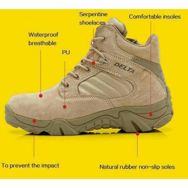 Diantara boot delta terpopuler kini adalah sepatu sefty proyek boots kulit sepatu coklat gurun 6 inchi db 5450 s outdor original higt qualityt dan harga baru 195xa sepatu safety boot pria cordura usa 6inci ujung besi athalastore proye anda bisa menemukan berbagai produk dari kickers crocodile dan caterpillar jika anda belum yakin untuk membeli boot delta. Tali sepatu pdl delta tni polri boots khakis krem 150 cm 1 pasangrp15 000. Sepatu pdl tni ad jatah terbaru tahun 2019 originalrp450 000.