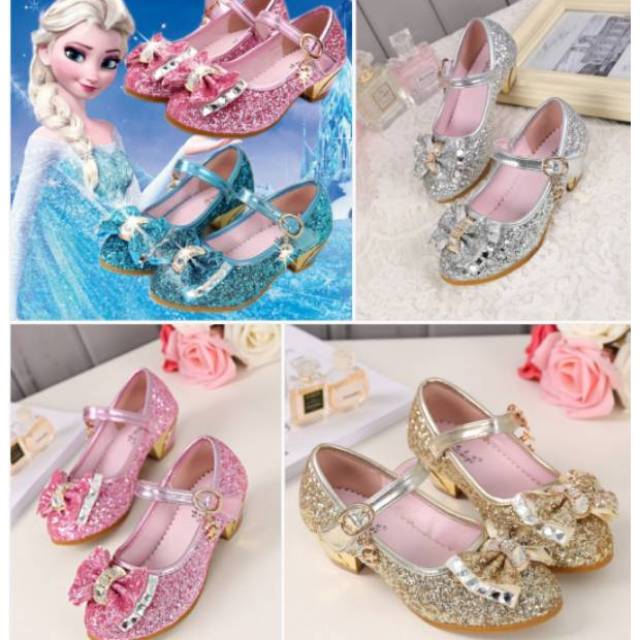 Size 22 36 Sepatu Pesta Pantofel Frozen Biru Pink Silver Anak
