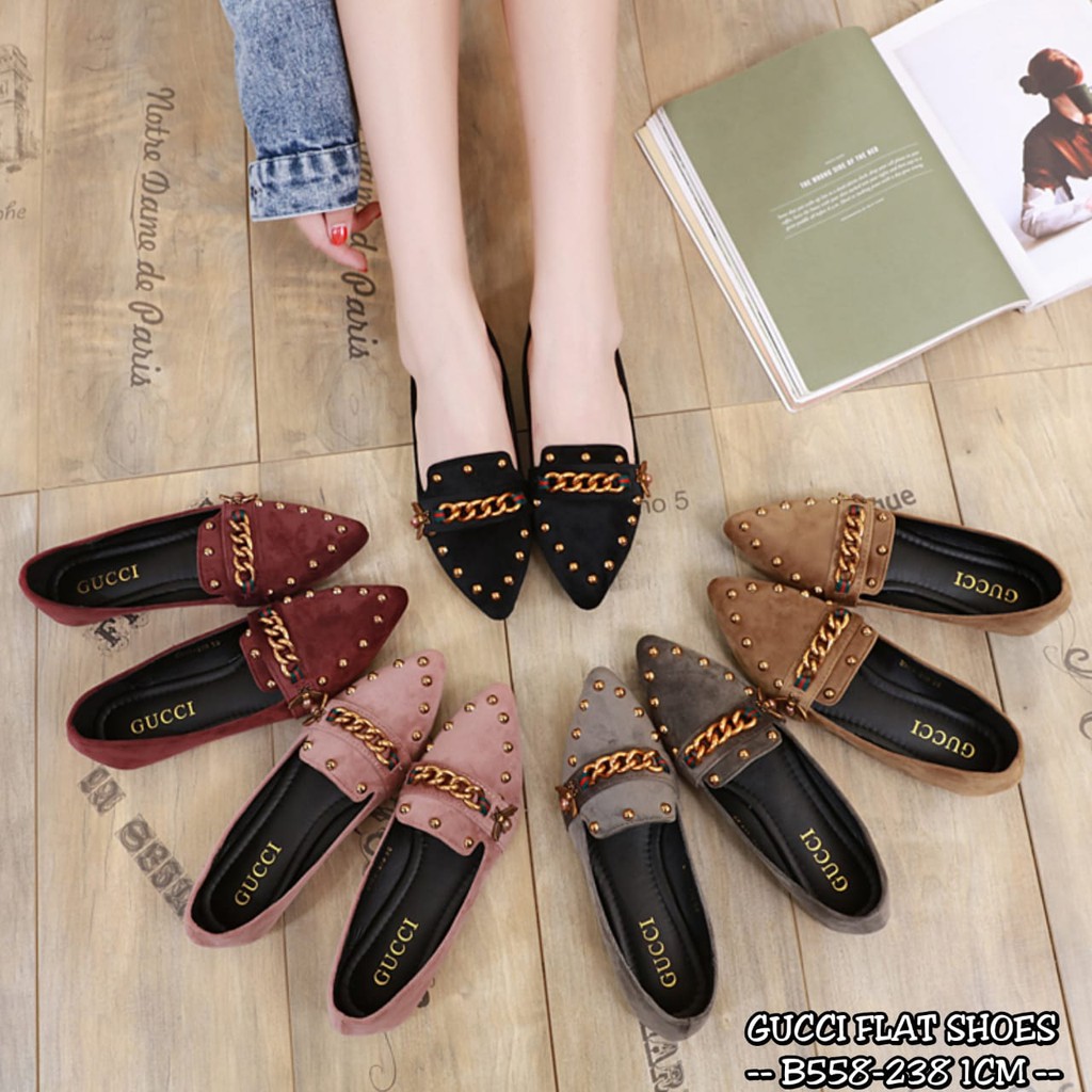 Sepatu Flat Suede Flat Shoes Wanita Model Gucci Lucu Santai Main
