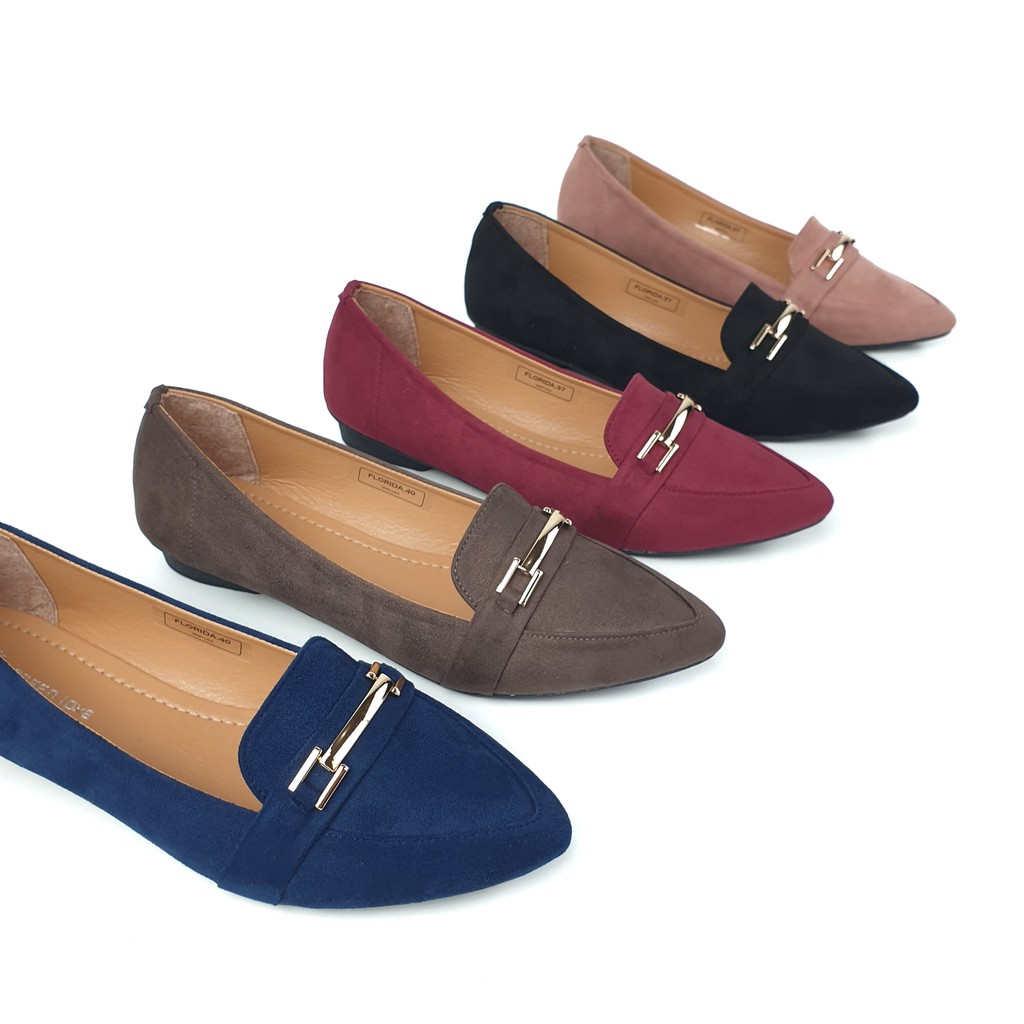 Jual Sepatu Wanita Flat Shoes Bludru Suede Hitam Navy Maroon 5851