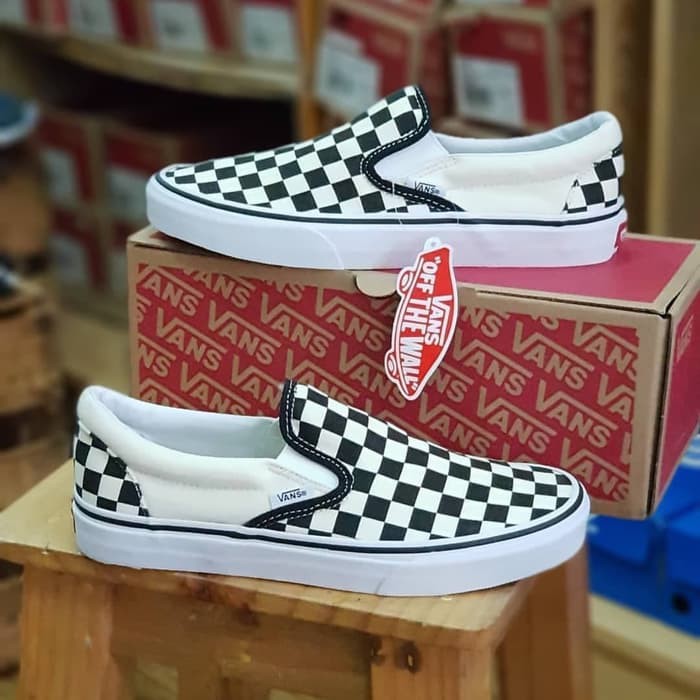 Sepatu Vans Checker Board Slip On Motif Kotak Catur Hitam Putih