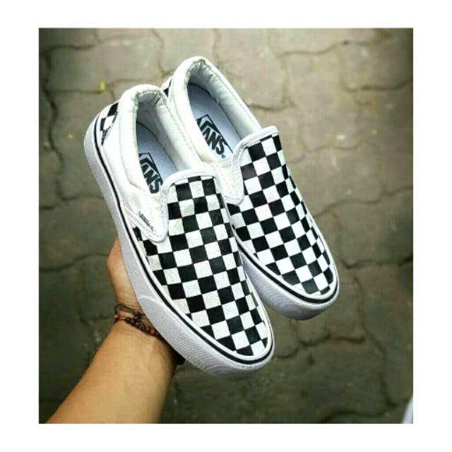 Sepatu Vans Slip On Motif Checker Board Catur Kotak Kotak White