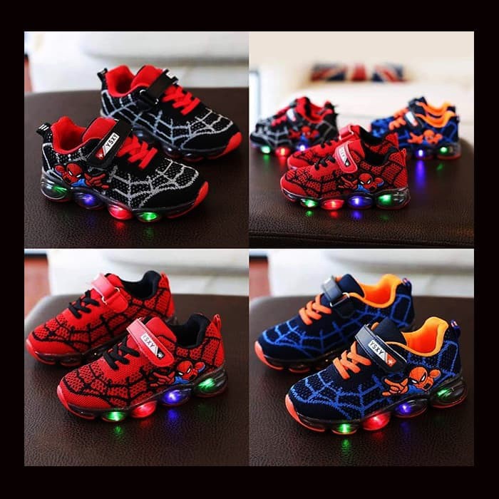 Sepatu Anak Laki Laki Lampu Led New Spiderman Kid Besar Zh Ss014