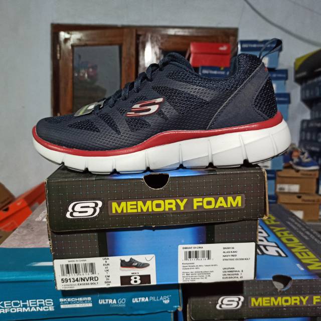 Skechers Strategic Navy Sepatu Lari Pria 59134 Nvrd Original