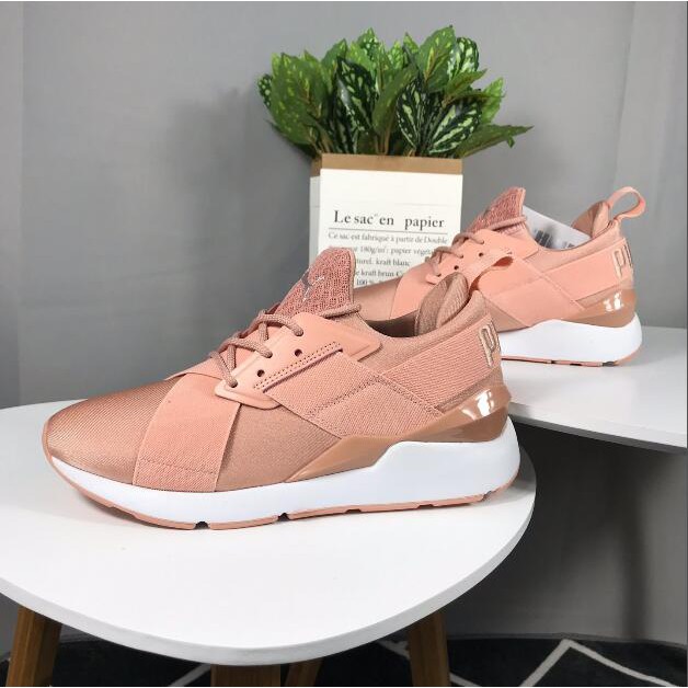 Sepatu Wanita Original Puma Muse Metal Emas Mawar Hitam Sepatu