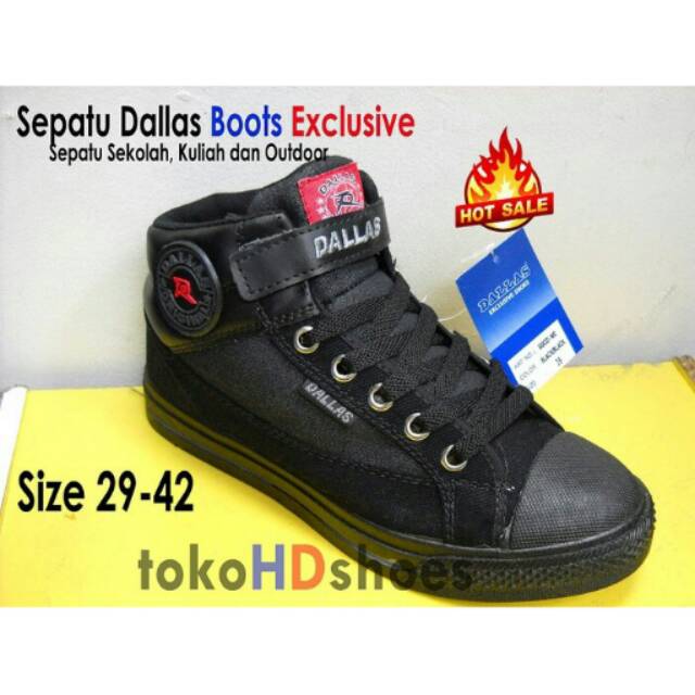 Sepatu Sekolah Dallas Boots Exclusive Black Hitam Shopee Indonesia