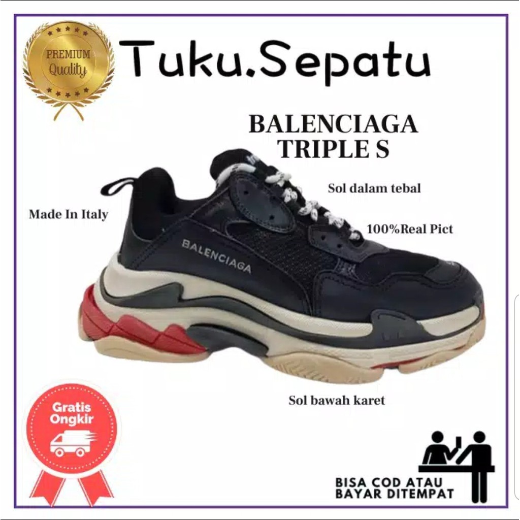 Balenciaga Triple S Grey Red Blue Unauthorized Original Elevenia