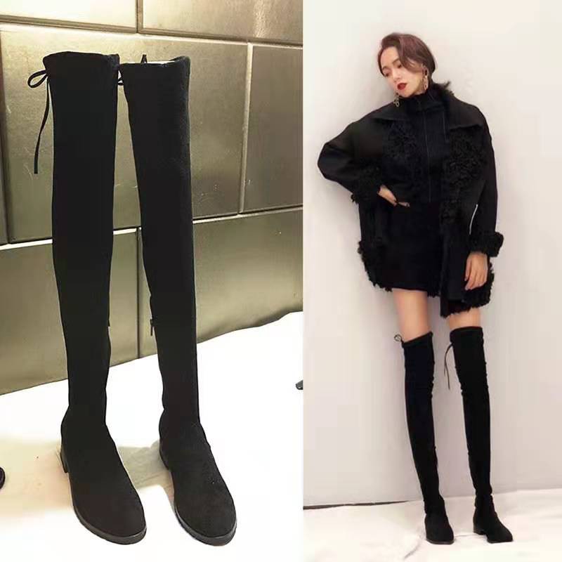 Sepatu Boots Setinggi Lutut Bahan Velvet Elastis Untuk Wanita