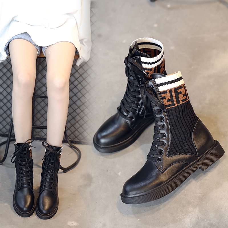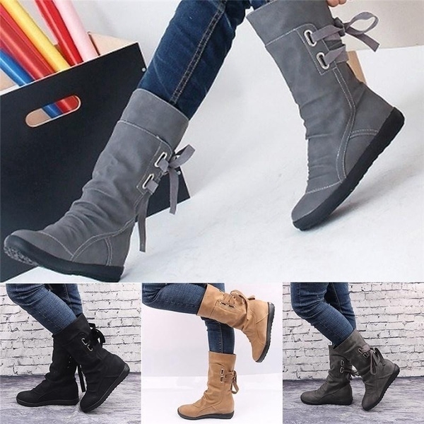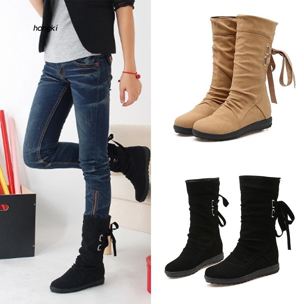 Sepatu Boots Sebetis Wanita Model Lace Up Flat Mid Calf Shopee