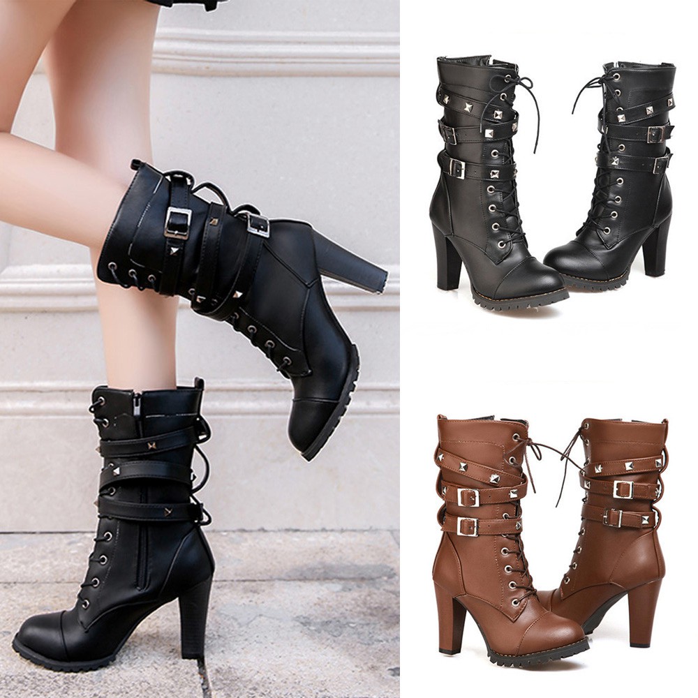 Sepatu Boots Sebetis Wanita Model Lace Up Untuk Musim Gugur