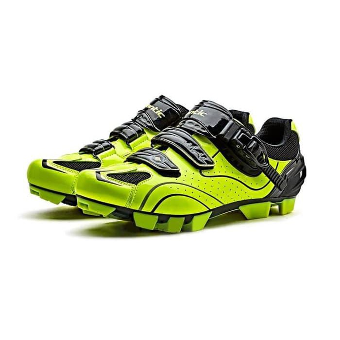 Sistem pengikat sepatu ini tidak menggunakan tali namun menggunakan strap velcro dan mekanisme. Berat sepasang sepatu size 41 720 gram an. Sepatu santic yang saya beli merupakan tipe mtb shoes.