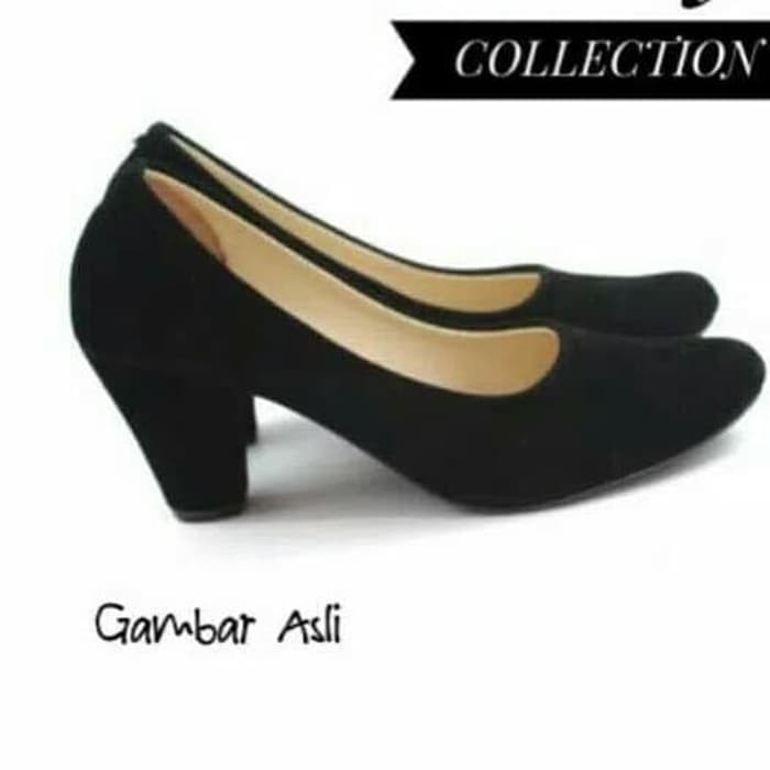 Jual Sl301 Sepatu Kerja Wanita Hitam Polos Hak Tinggi Hitam Suede