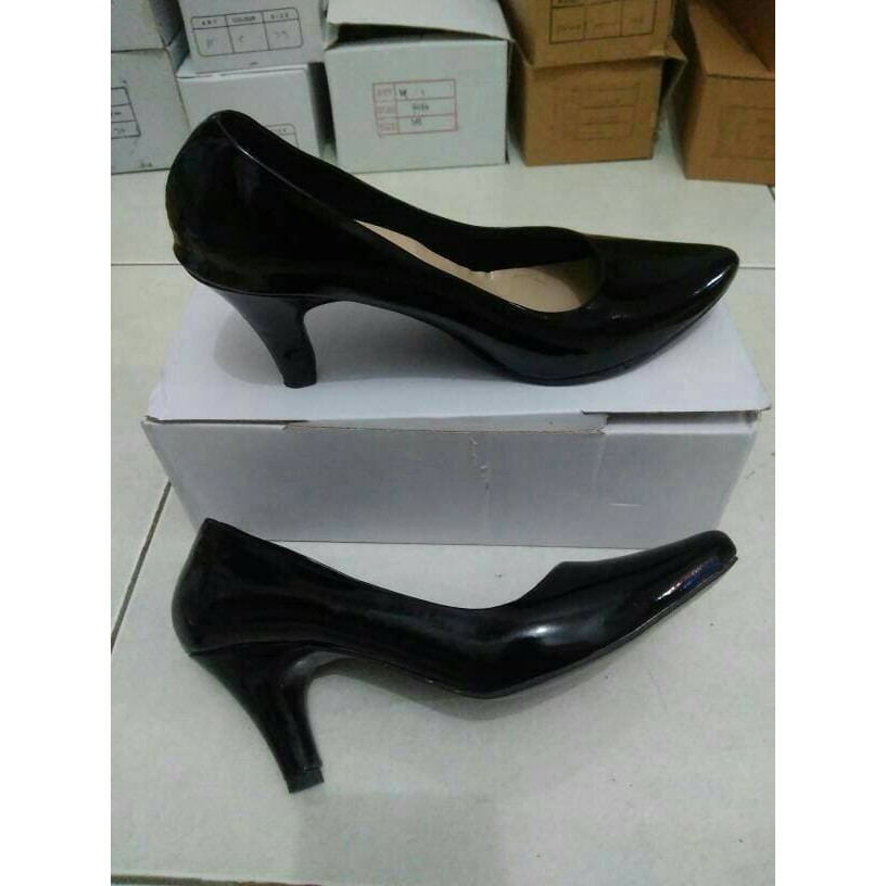 High Heels Pantopel Glossy Hitam Polos Sepatu Kerja Wanita Hitam