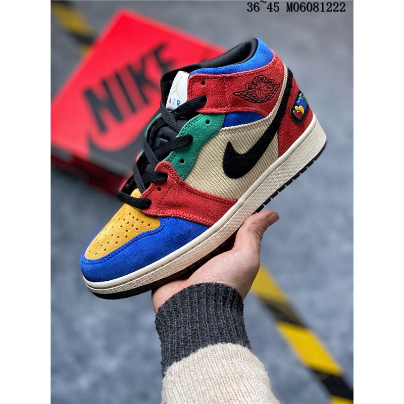 Spot Asli Nike Air Jordan 1 Mid Aj1 Colorful Corduroy Sepatu