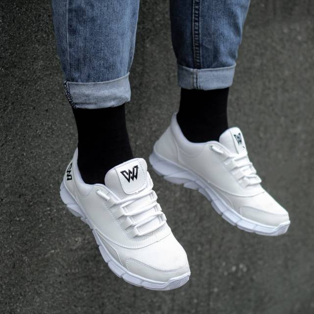 Sepatu Putih Pria Sneakers Casual Polos Kasual Cowok Lokal Wolf