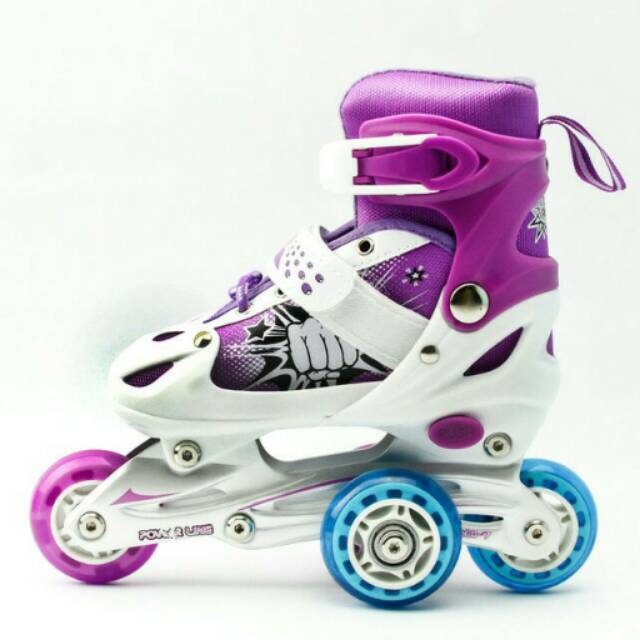 Ukuran sepatu roda bisa diatur dengan menekan tombol adjustable rem di bagian sepatu sebelah kanan. Jual sepatu roda inline skate power warna ungu pink biru s m l dengan harga rp177 000 dari toko online berkahsejahteracom kota tangerang. Sepatu 4 roda model jadul sepatu warna pink biru merah uk bisa di stel no s 31 34 m 35 38 max 80 kg rp 300 000 discount 30 000 rp 275 000.