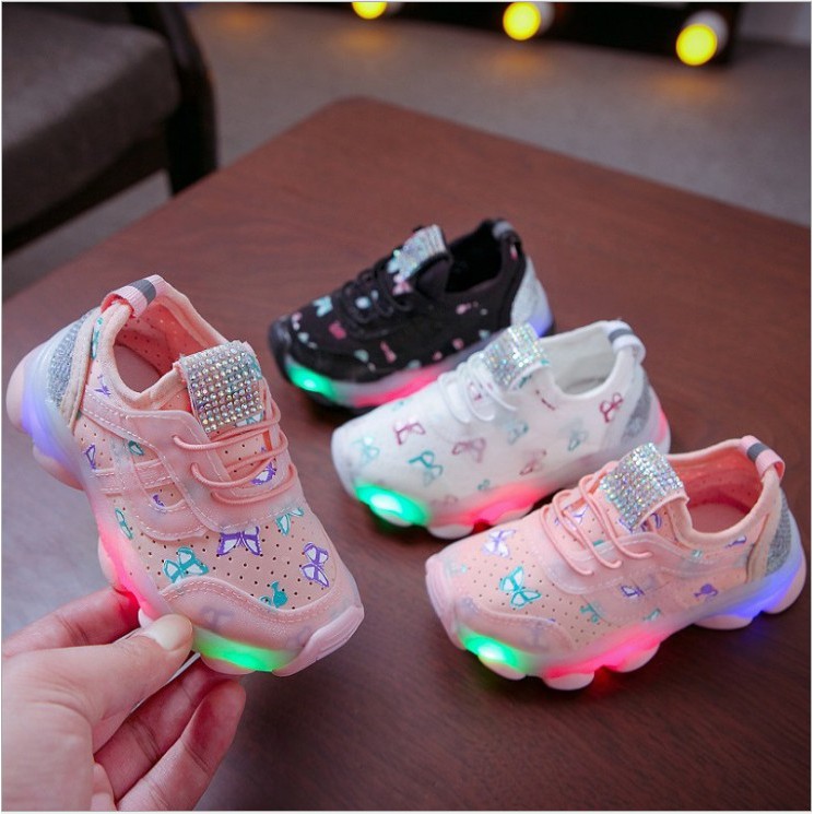 Sh1962 Sepatu Sport Anak Lampu Led Butterfly Sepatu Sekolah Kupu