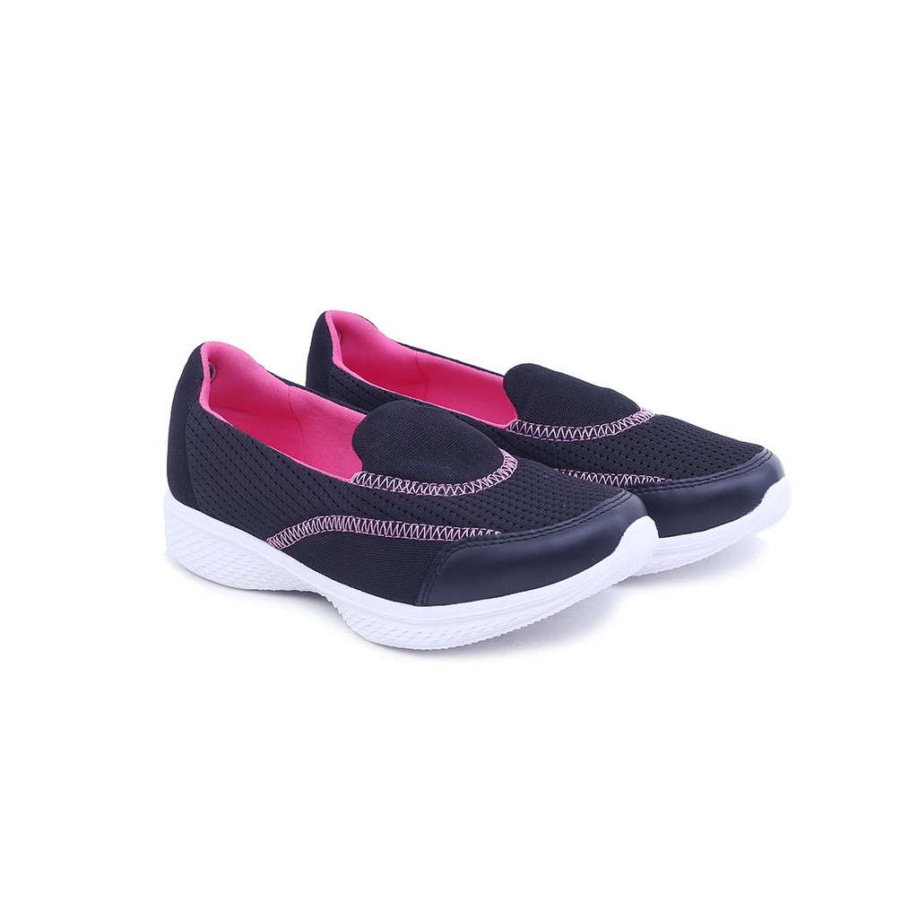 Sepatu Sekolah Anak Perempuan Slip On Lol Hitam Pink Abu Import