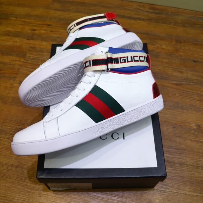 Sepatu Gucci Stripe Ace High Top Sneaker Super Premium Mirror