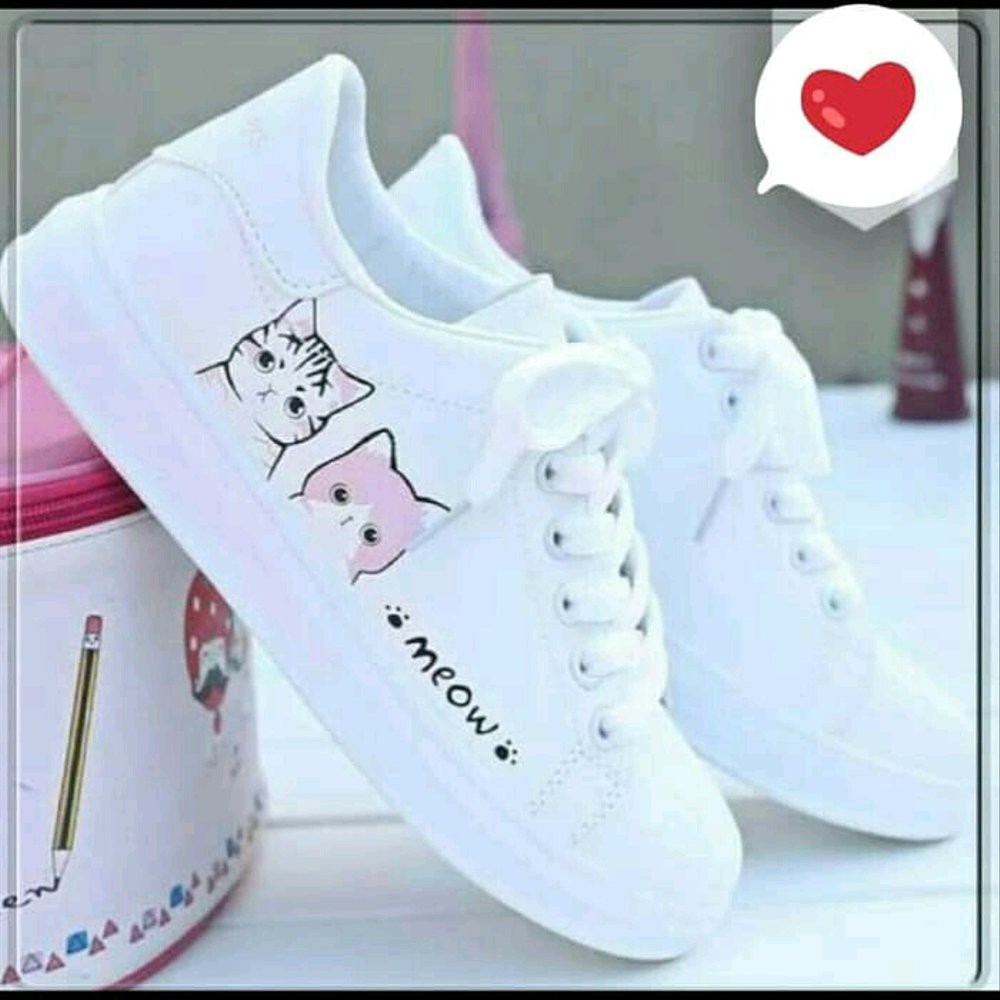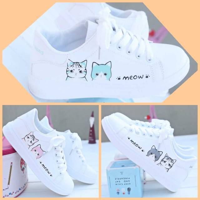 Jual Sepatu Kets Kucing Meow Mo 01 Wanita Sneaker Lucu Putih Murah