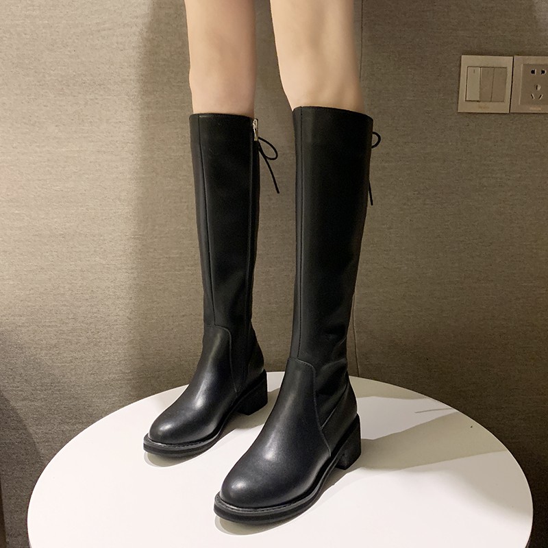 Sepatu Boots Selutut High Heels Tebal Gaya Korea Untuk Wanita
