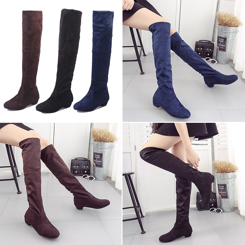 Sepatu Boots Selutut Bahan Suede Tipis Untuk Wanita Shopee