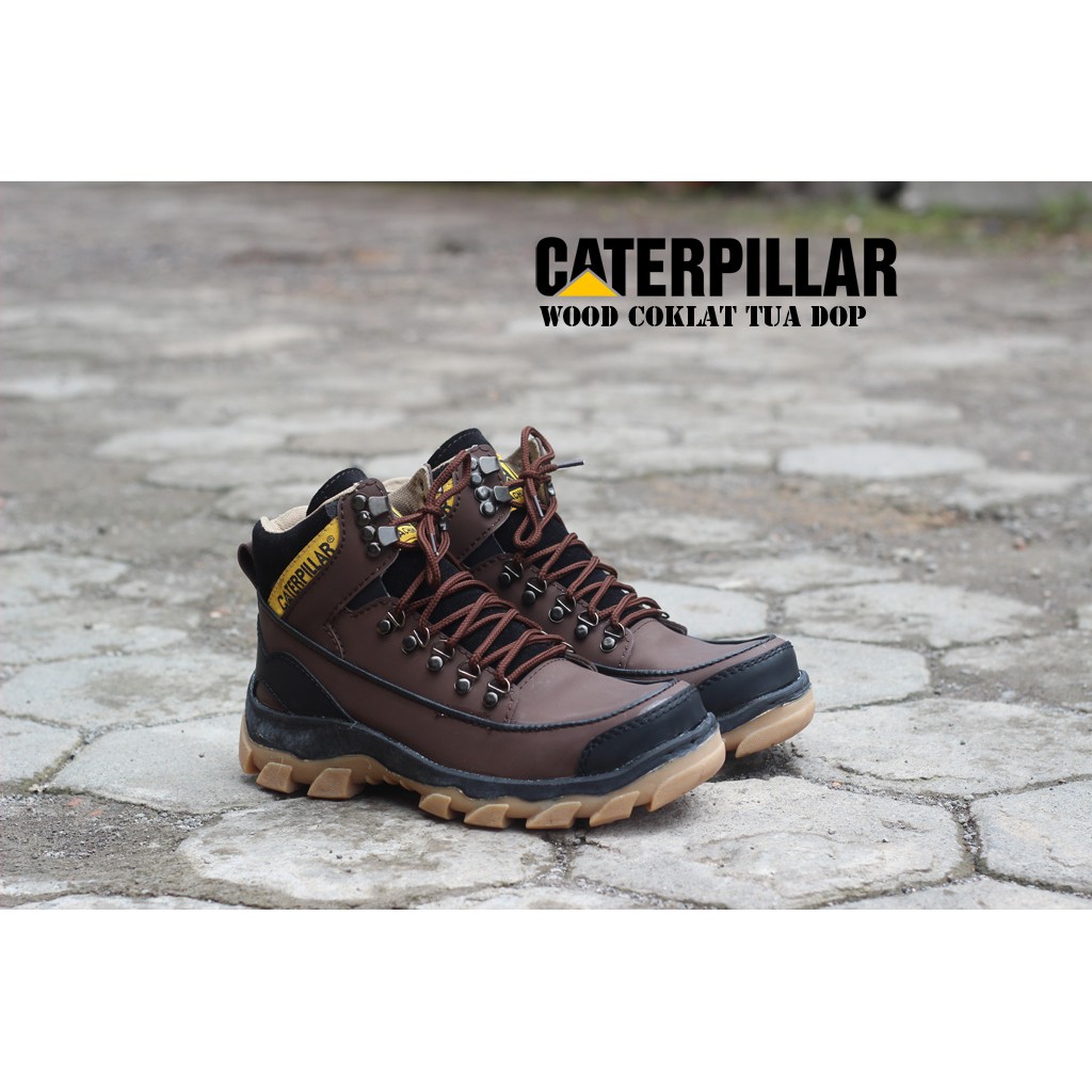 Sepatu Safety Caterpillar Boots Wood Warna Coklat Tua Dop Shopee