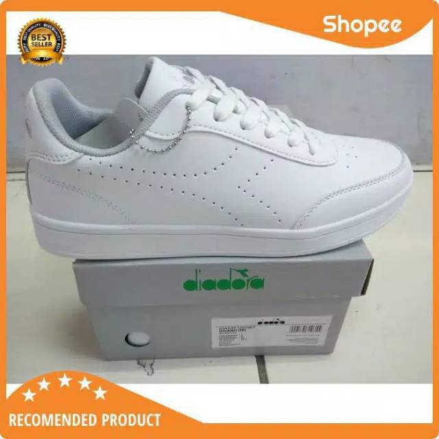 Diadora sepatu wanita. Desainnya yang simple dengan detail tali sederhana menjadikan sepatu ini juga bisa dikenakan untuk jalan jalan atau pergi ke kampus.