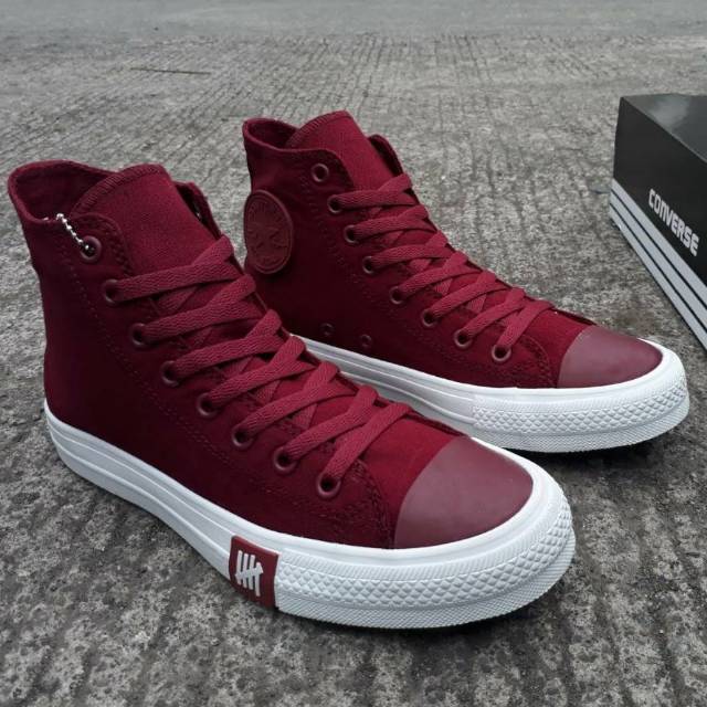 Sepatu Converse All Star Undeafeated High Red Maroon White Merah