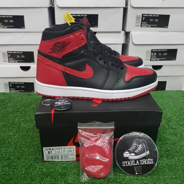 Sepatu Nike Air Jordan 1 Retro High Banned Bred 100 Pk Version
