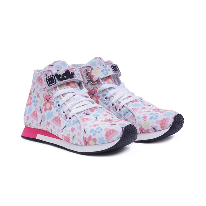 Model sepatu sneakers anak perempuan dilengkapi berbagai macam tambahan aksesoris sehingga anak perempuan akan merasa sangat senang ketika memakainya.
