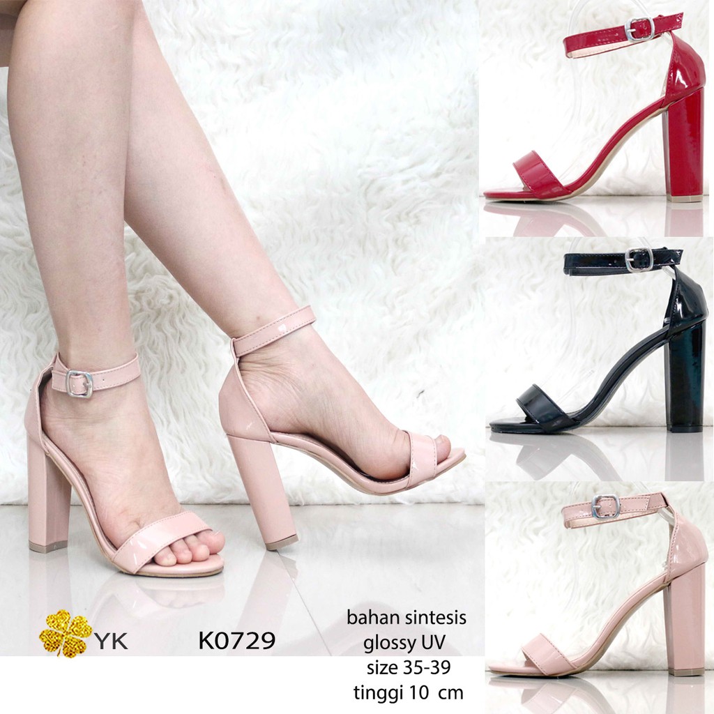 Jual Sepatu Hak Heels Wanita Ykshoes 0516 Big Chunky 10cm Kaca