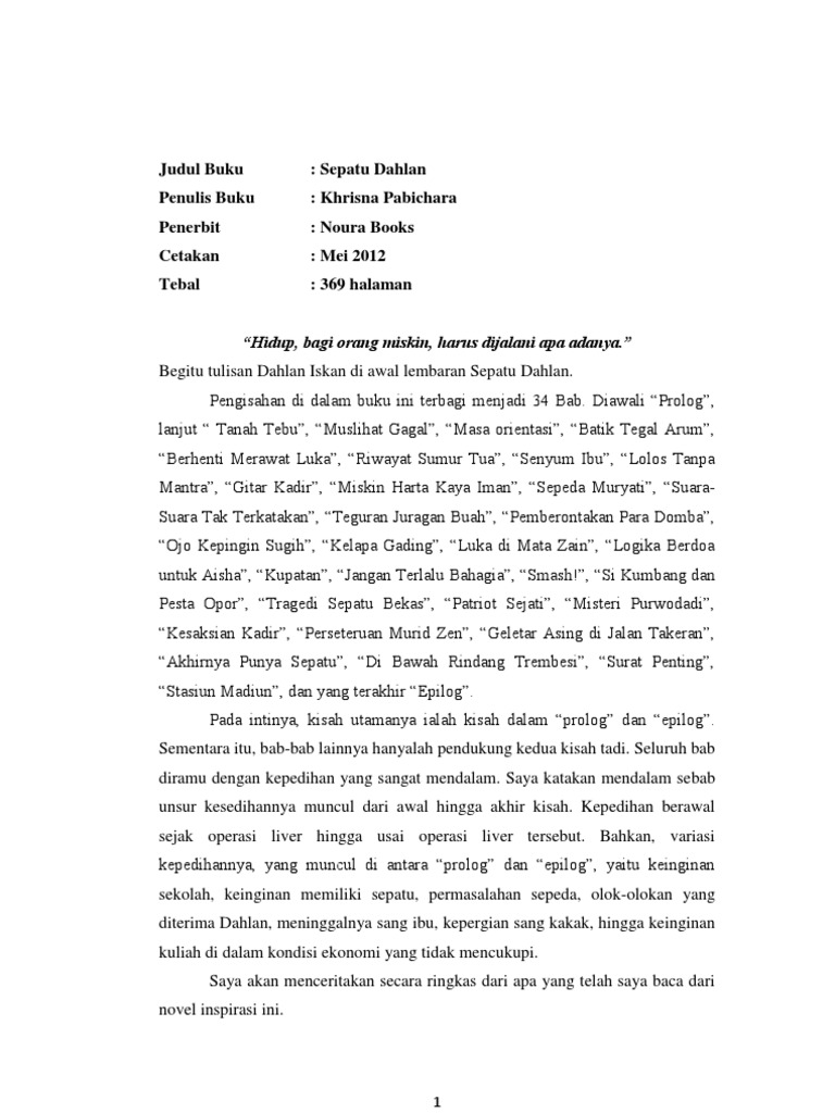 Resensi novel sepatu dahlan. Kehidupan yang dahlan alami penuh liku liku. Pak dahlan mudah mudahan menjadi inspirasi untuk bangsa indonesia sekarang dan masa depan ujarnya.
