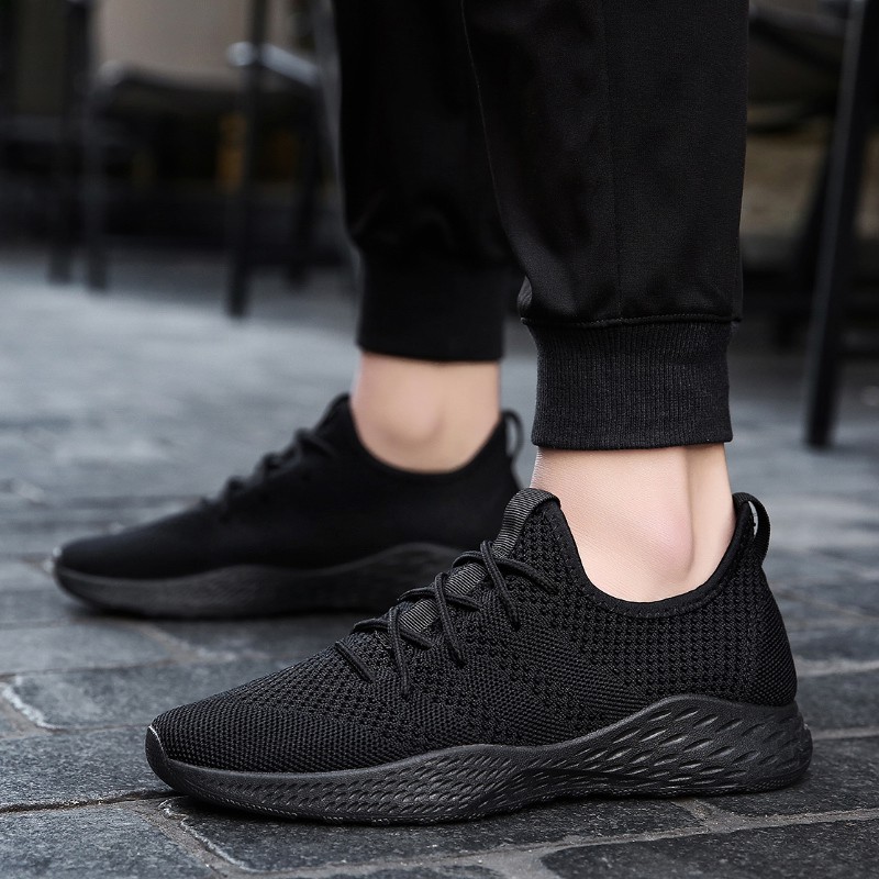 Sepatu Sneakers Olahraga Lari Warna Hitam Polos Untuk Outdoor