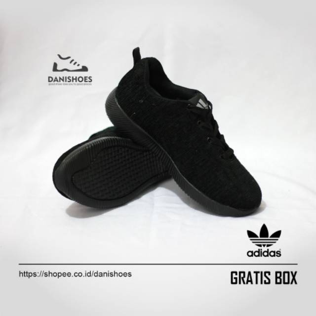 Jual Sepatu Pria Adidas Hitam Polos Fullblack Running Sport Lari