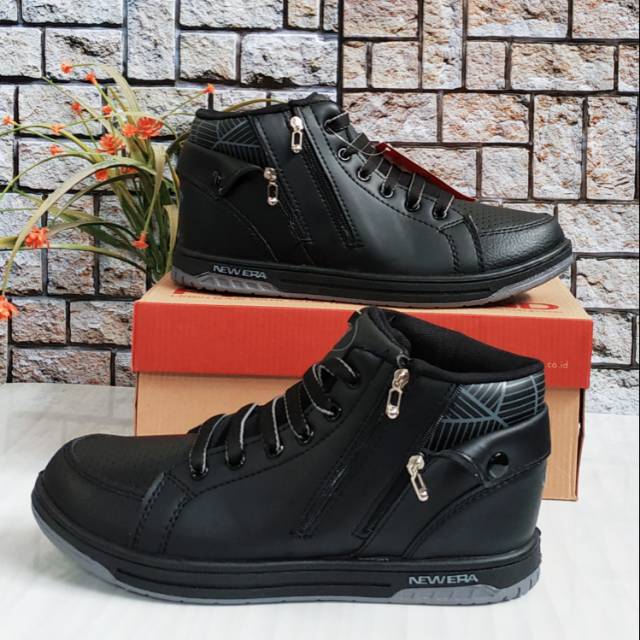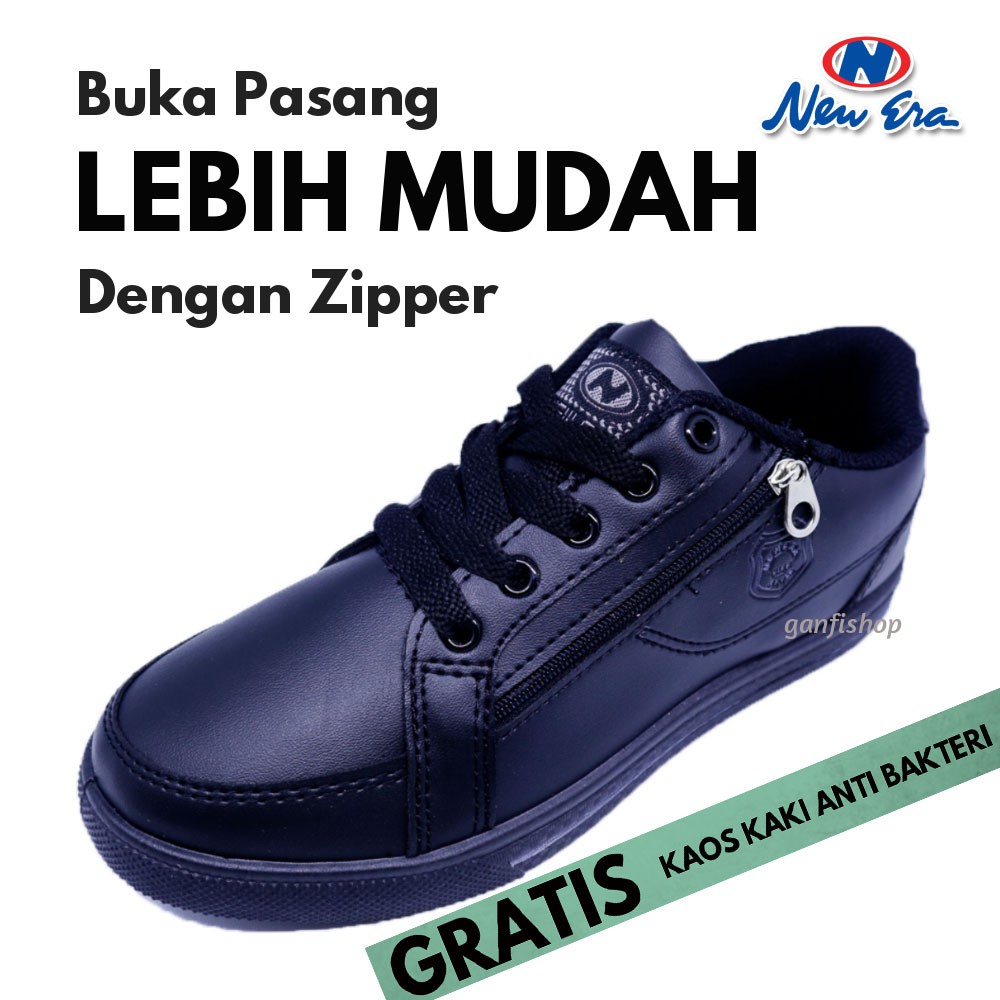 Sepatu Sekolah Hitam Resleting New Era 39 42 Shopee Indonesia